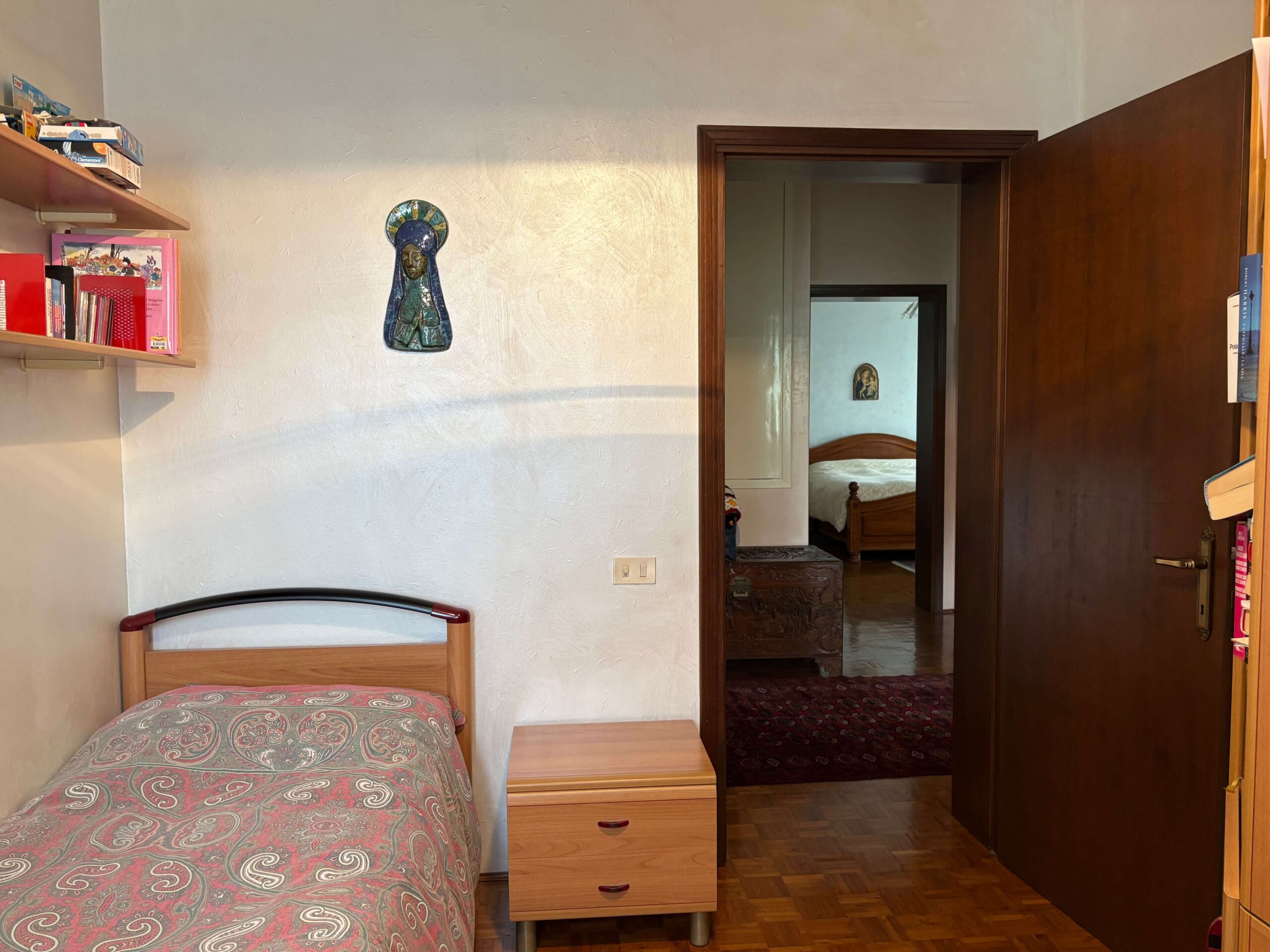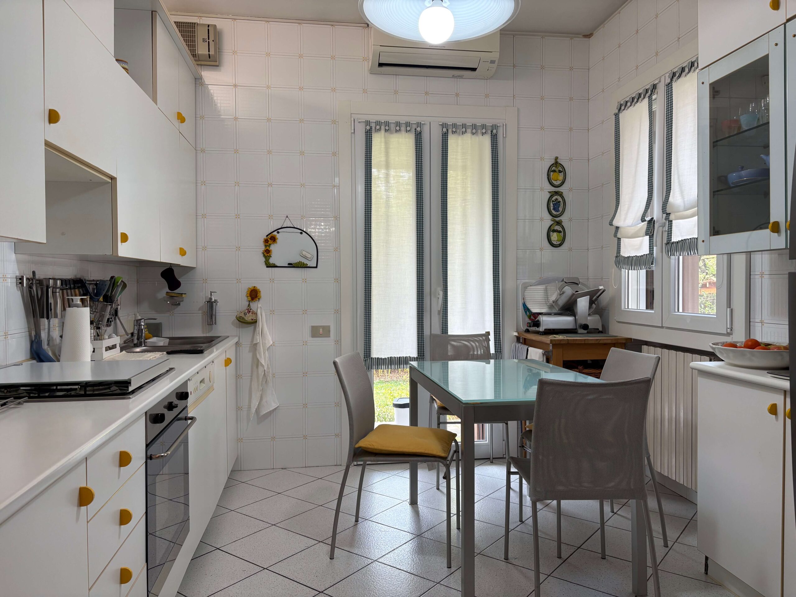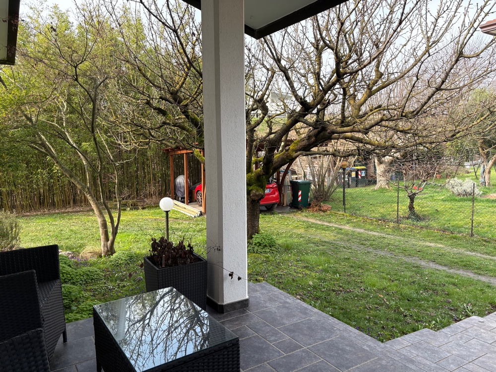 Proponiamo in vendita in Gaggio, in contesto residenziale, porzione di trivilla, riparata dal traffico, con scoperto di circa 250 mq. disposto lungo i 3 lati dell’abitazione.