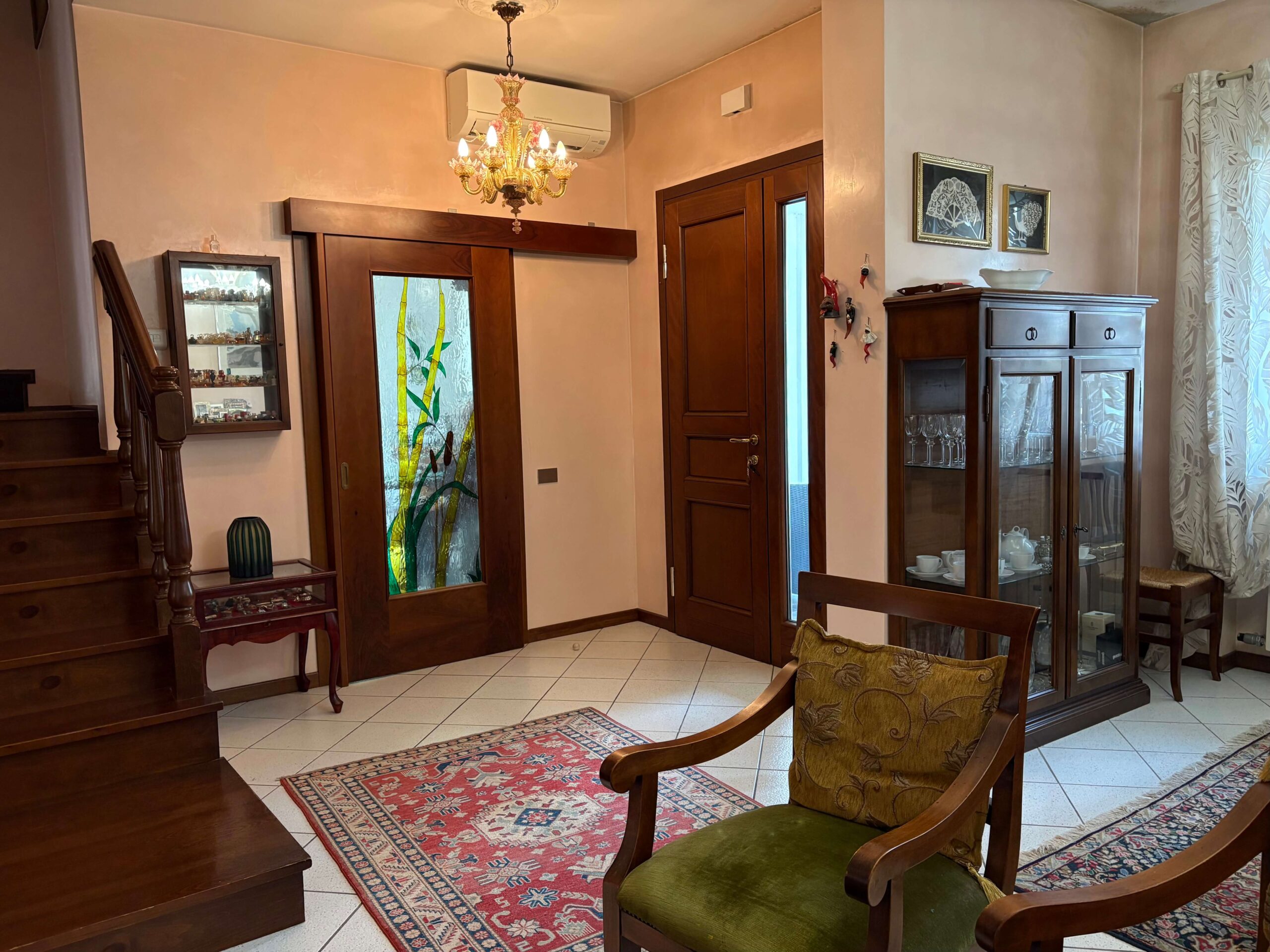 I pavimenti sono in piastrelle nella quasi totalità degli ambienti ed in legno nelle camere, i serramenti, bianchi in pvc con vetrocamera, sono stati sostituiti sfruttando i lavori di efficientamento energetico, così come scuri e zanzariere.