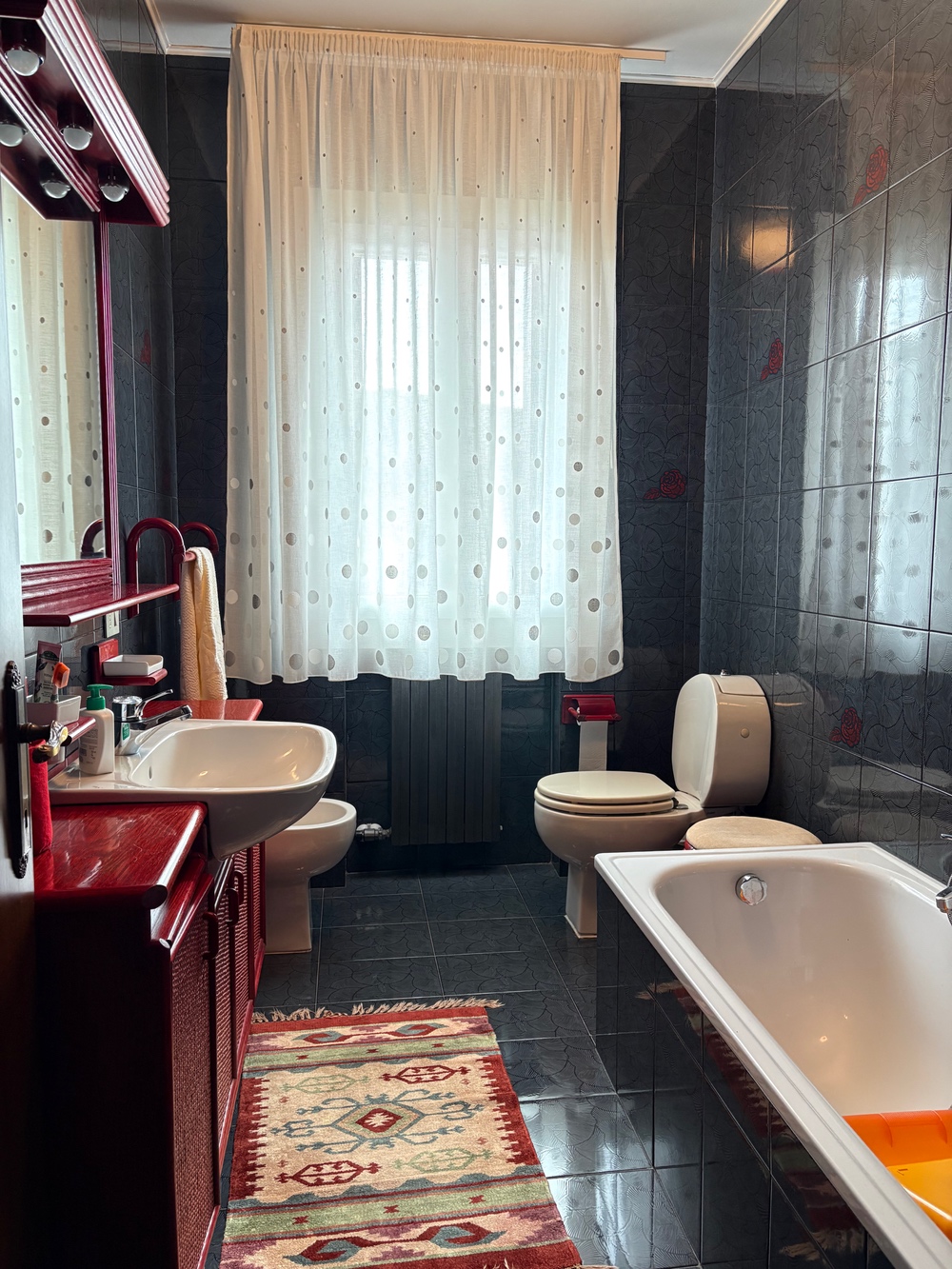 - al Piano Primo da 3 camere da letto (1 matrimoniale, 1 doppia, 1 singola), doppi servizi entrambi finestrati (uno con accesso dalla matrimoniale dotato di lavabo, wc e bidet, l’altro completo con vasca), armadiature a muro e soffitta/sottotetto;