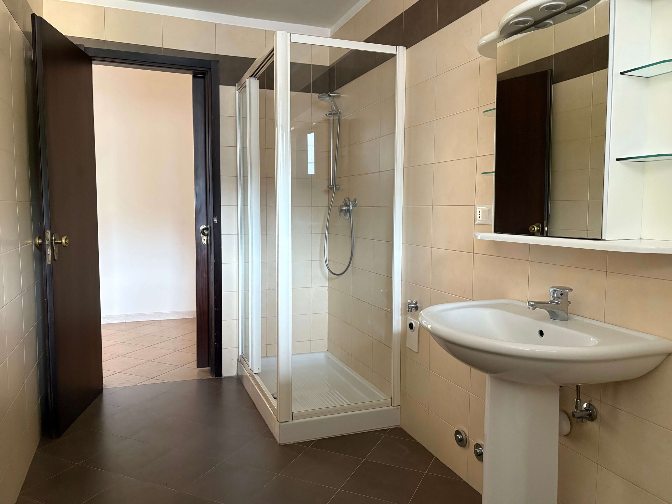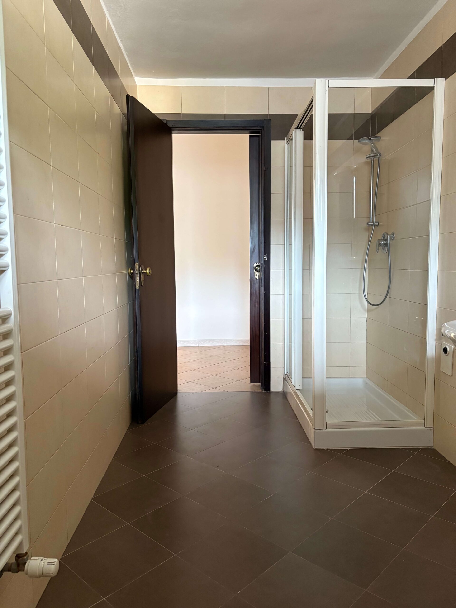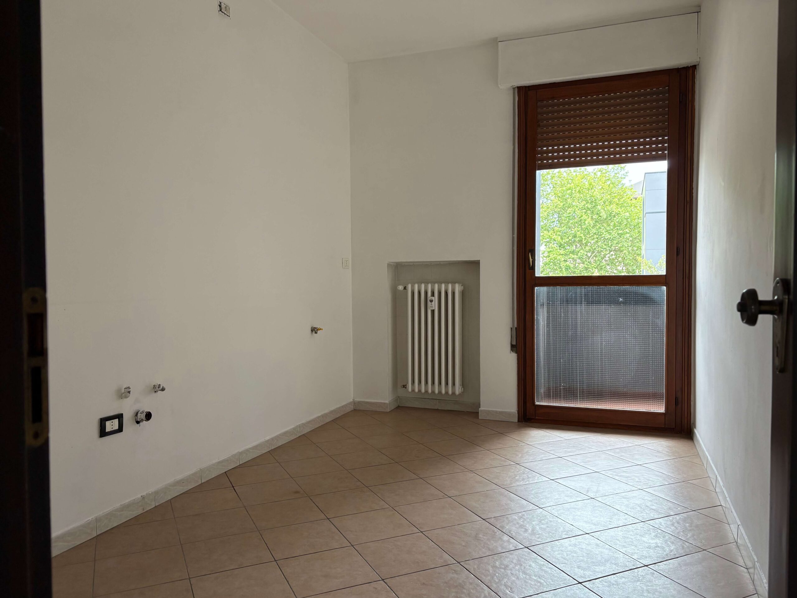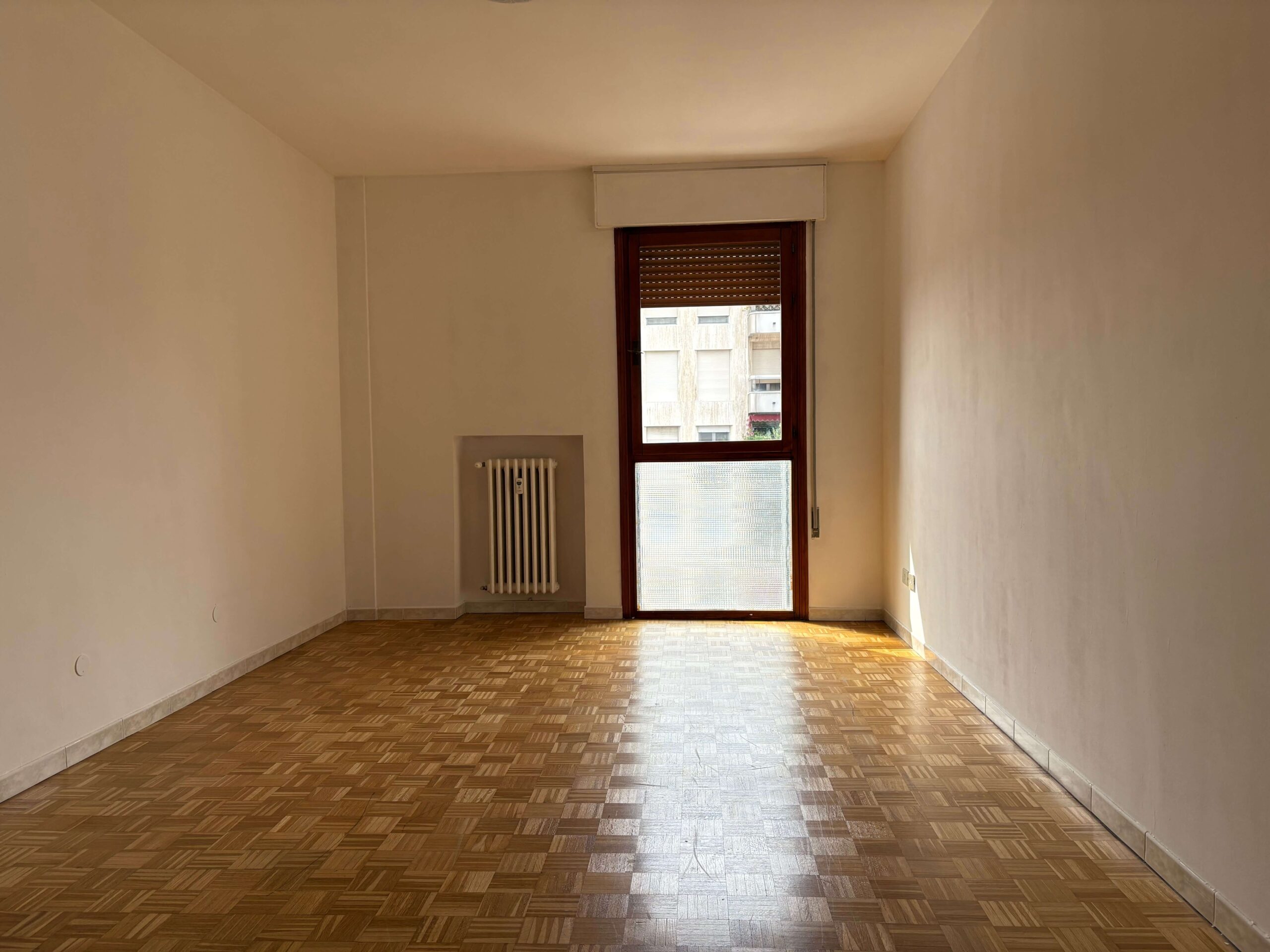 L’immobile si compone di ingresso, soggiorno con poggiolo, cucina con poggiolo, 2 camere (1 matrimoniale e 1 singola), servizio con doccia e magazzino/soffitta al Piano Settimo.