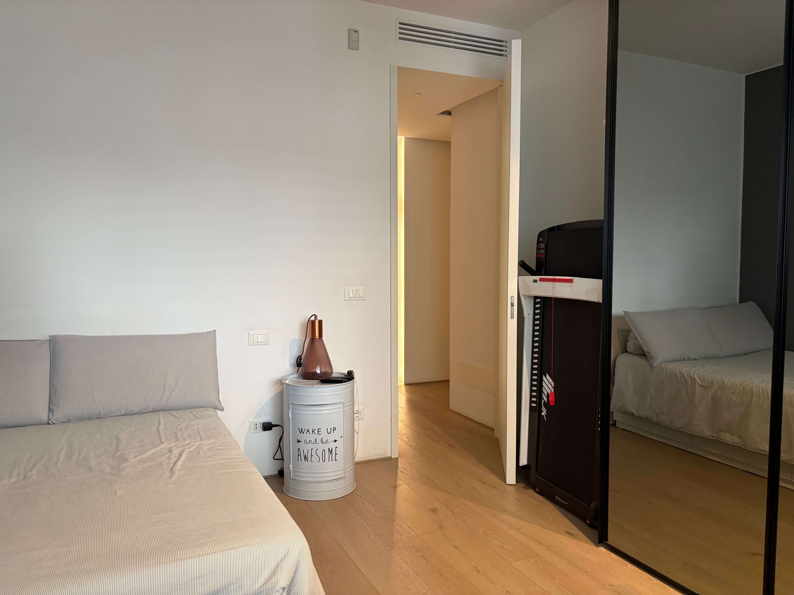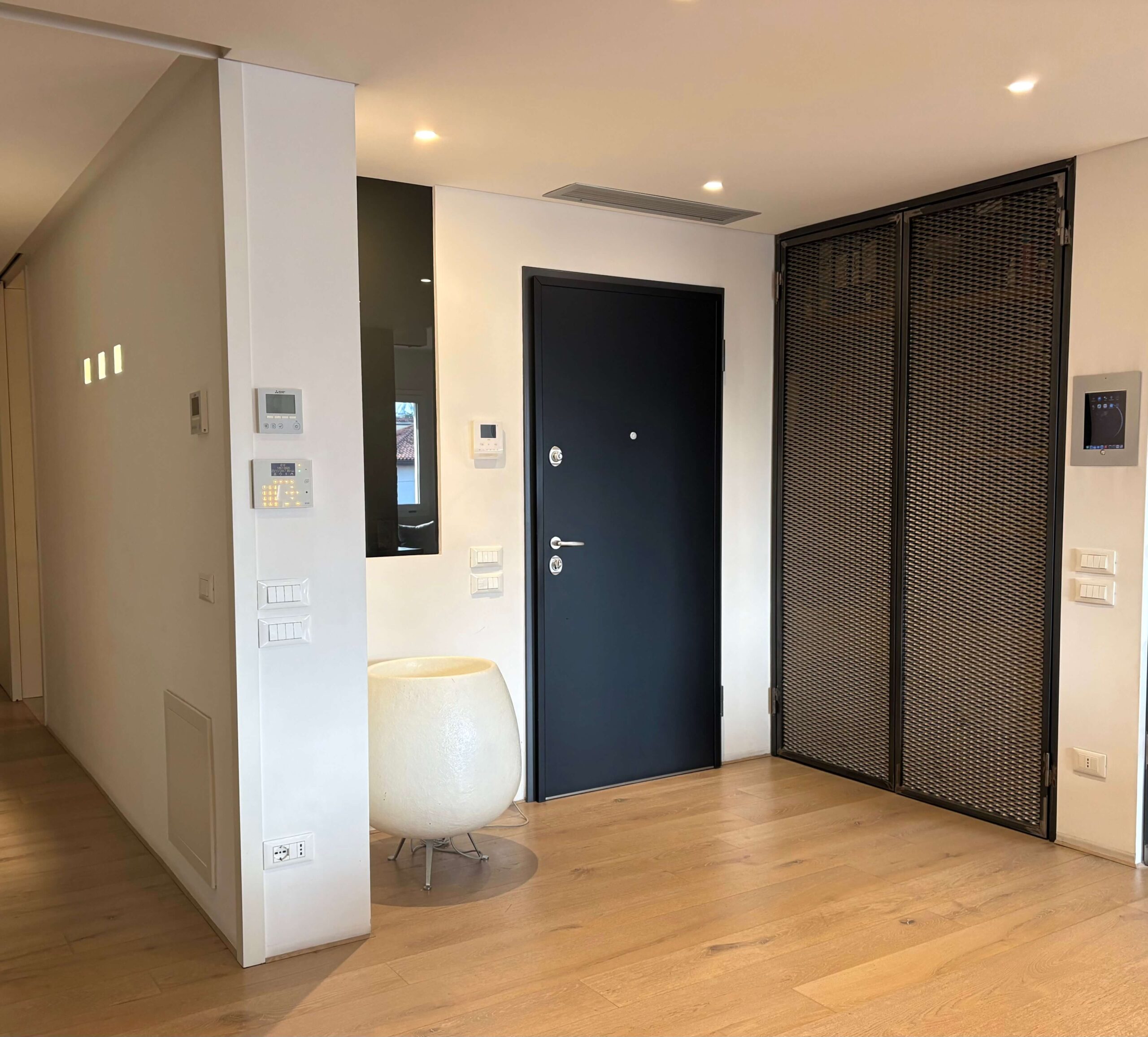 L’appartamento è dotato di impianto di climatizzazione canalizzato, di impianto di antifurto volumetrico e perimetrale e di impianto di domotica di base.