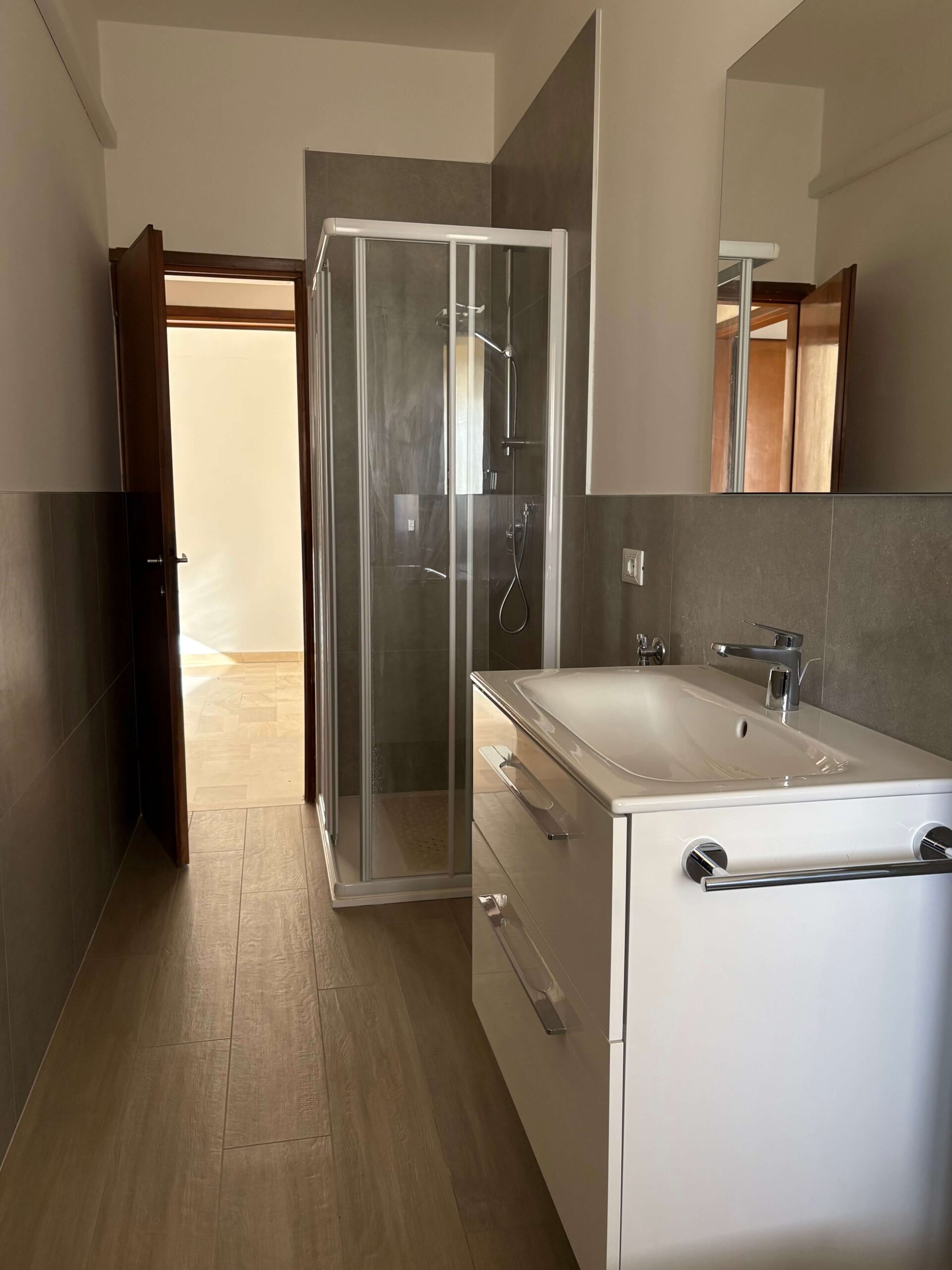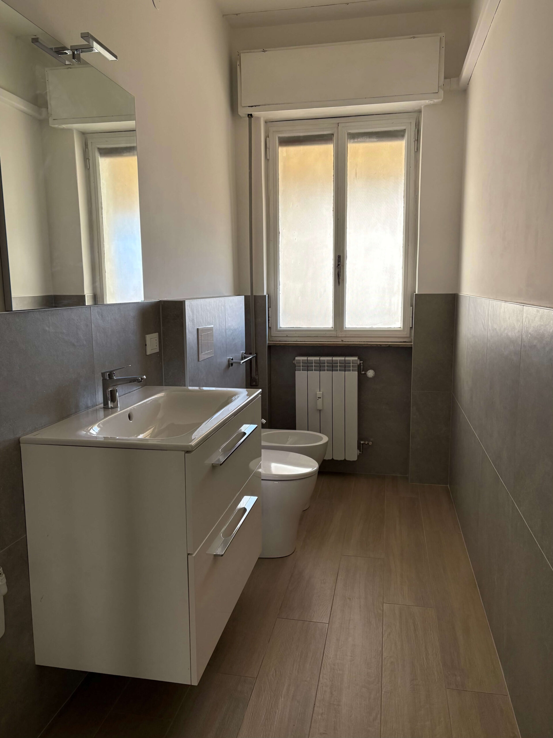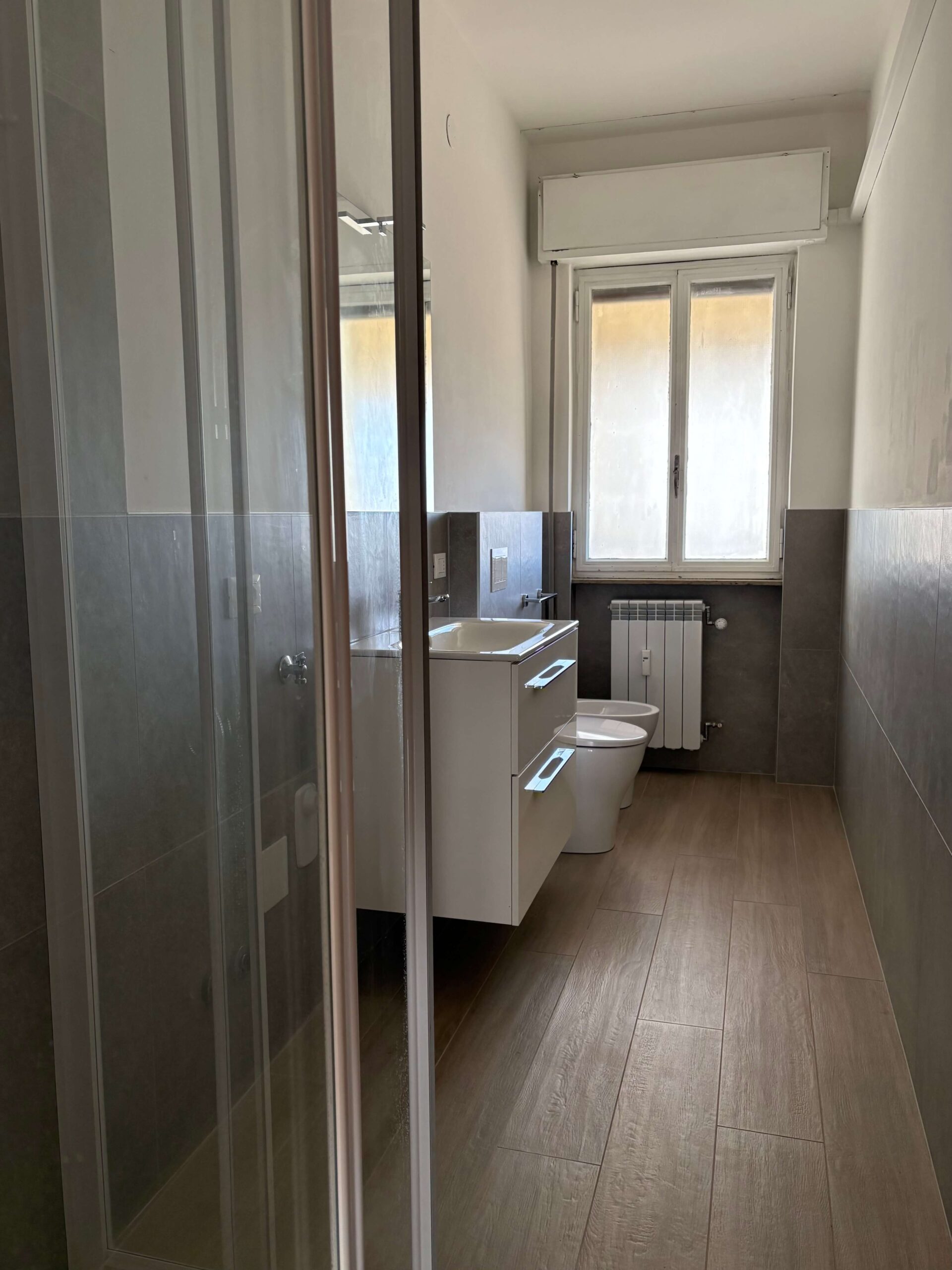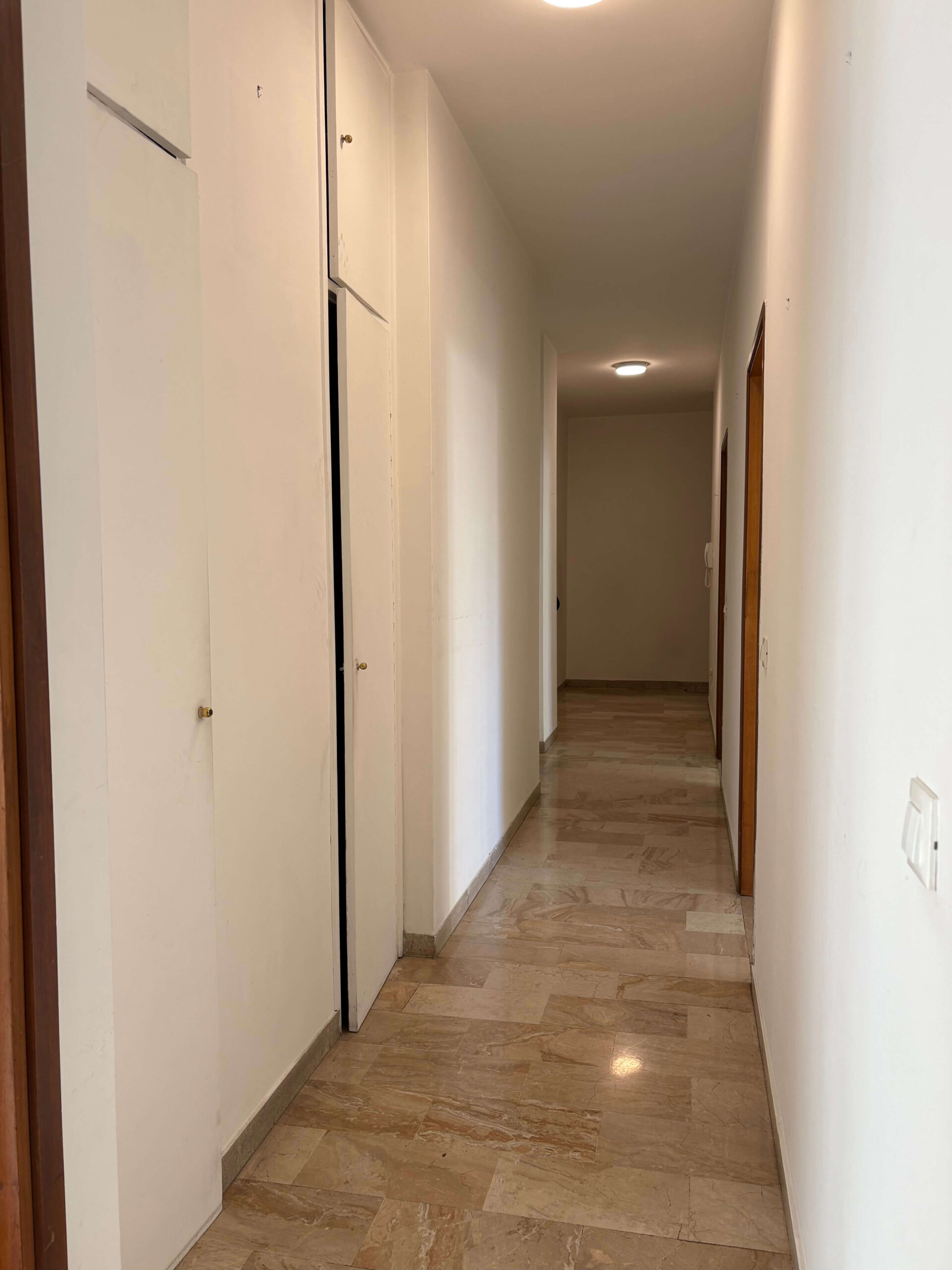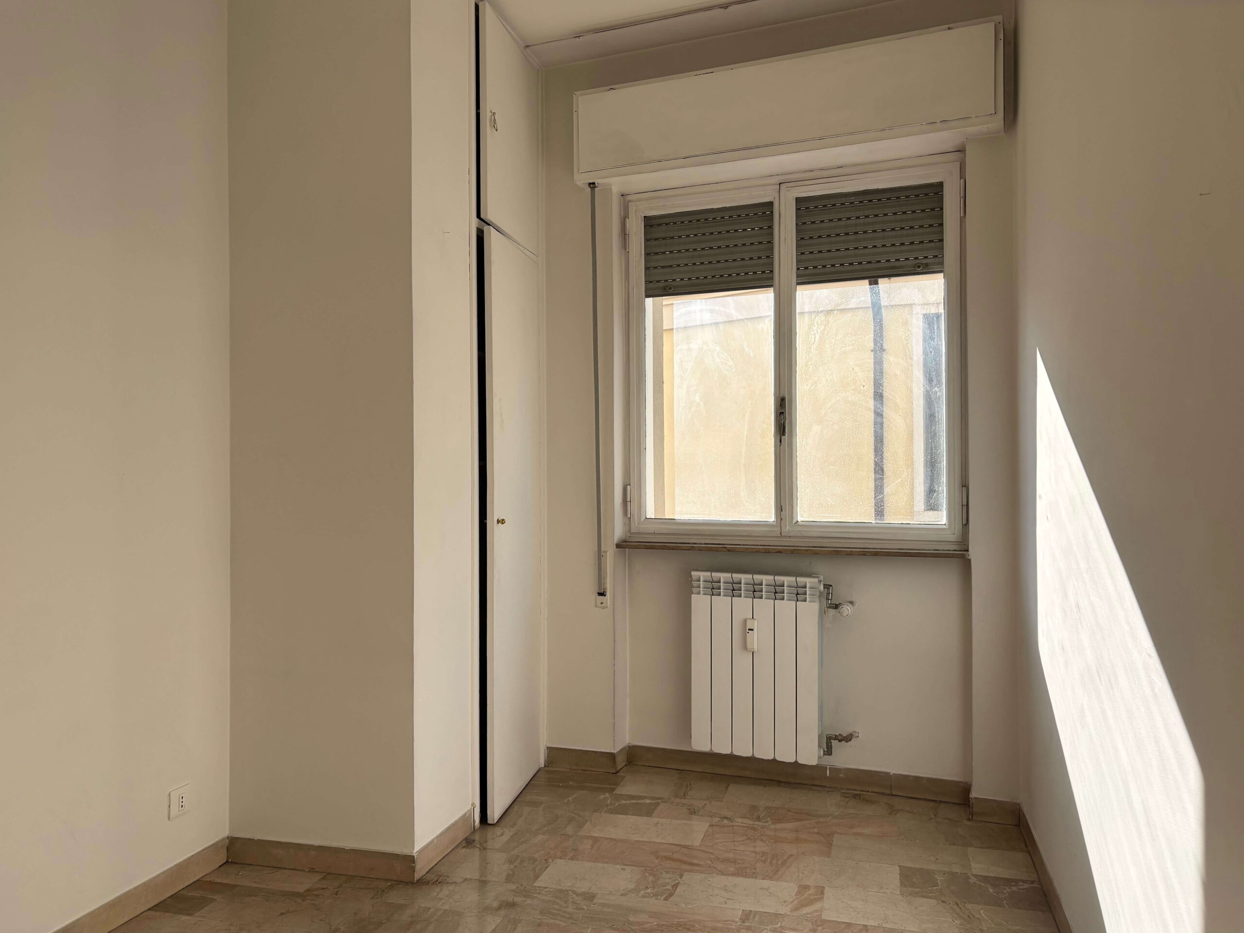 L’appartamento ha subito, recentemente, alcuni interventi di restauro, quali il rifacimento dell’impianto elettrico nel 2021 ed il rifacimento del bagno nel 2024, le restanti finiture risultano originali dell’anno di costruzione. I pavimenti sono in marmo tranne nella camera matrimoniale in parquet, serramenti in ferro verniciato con vetro singolo, porte interne originali così come l’impianto idraulico del cucinino.