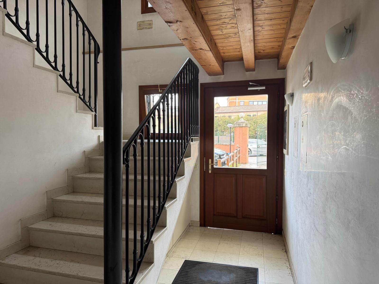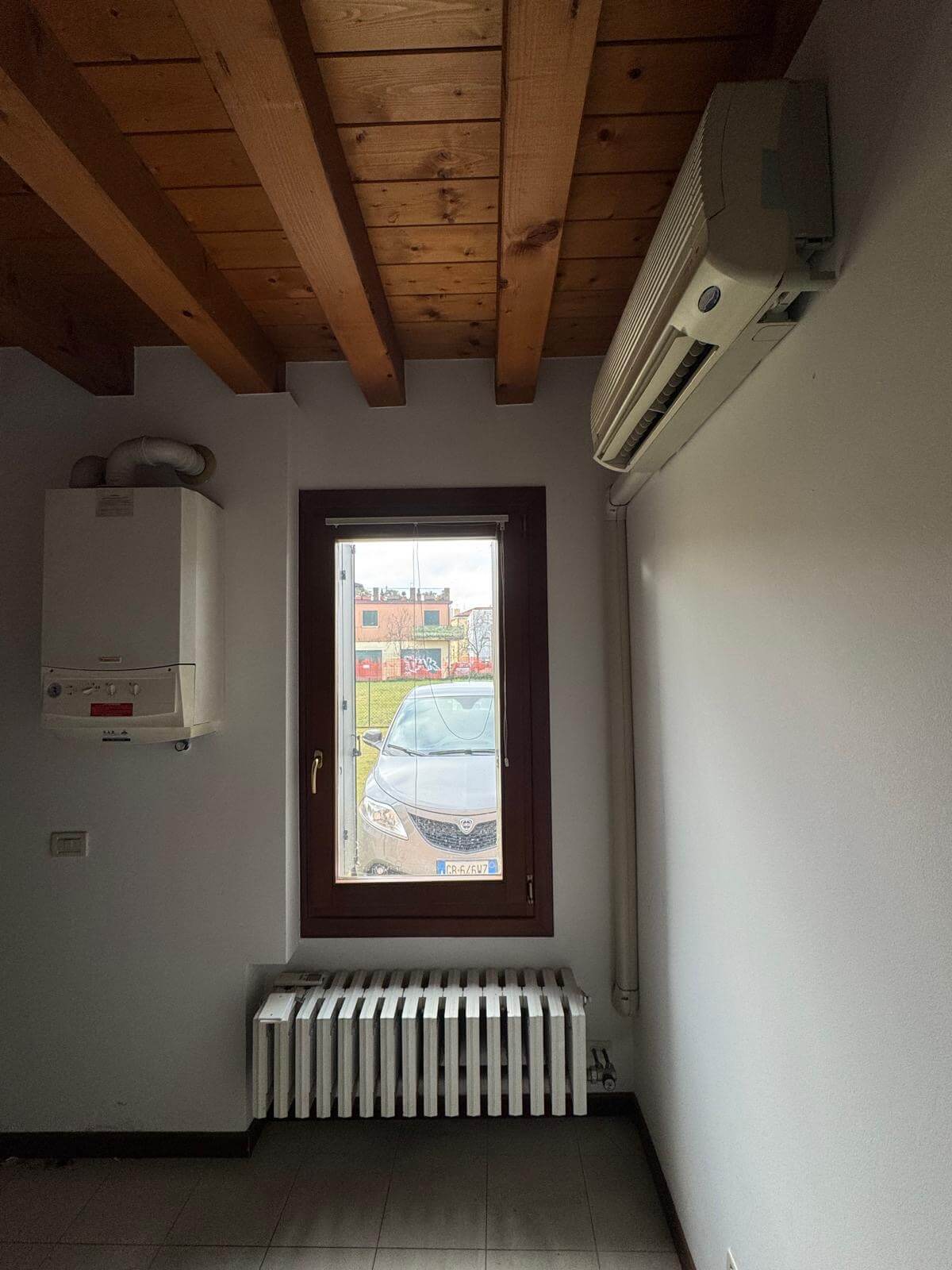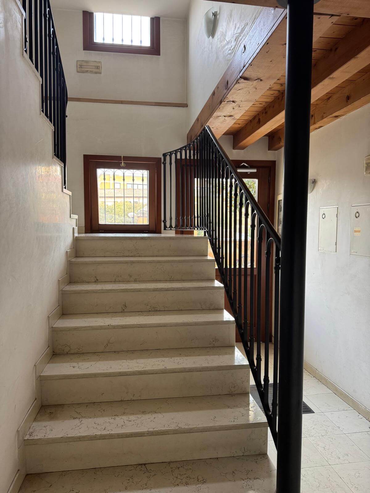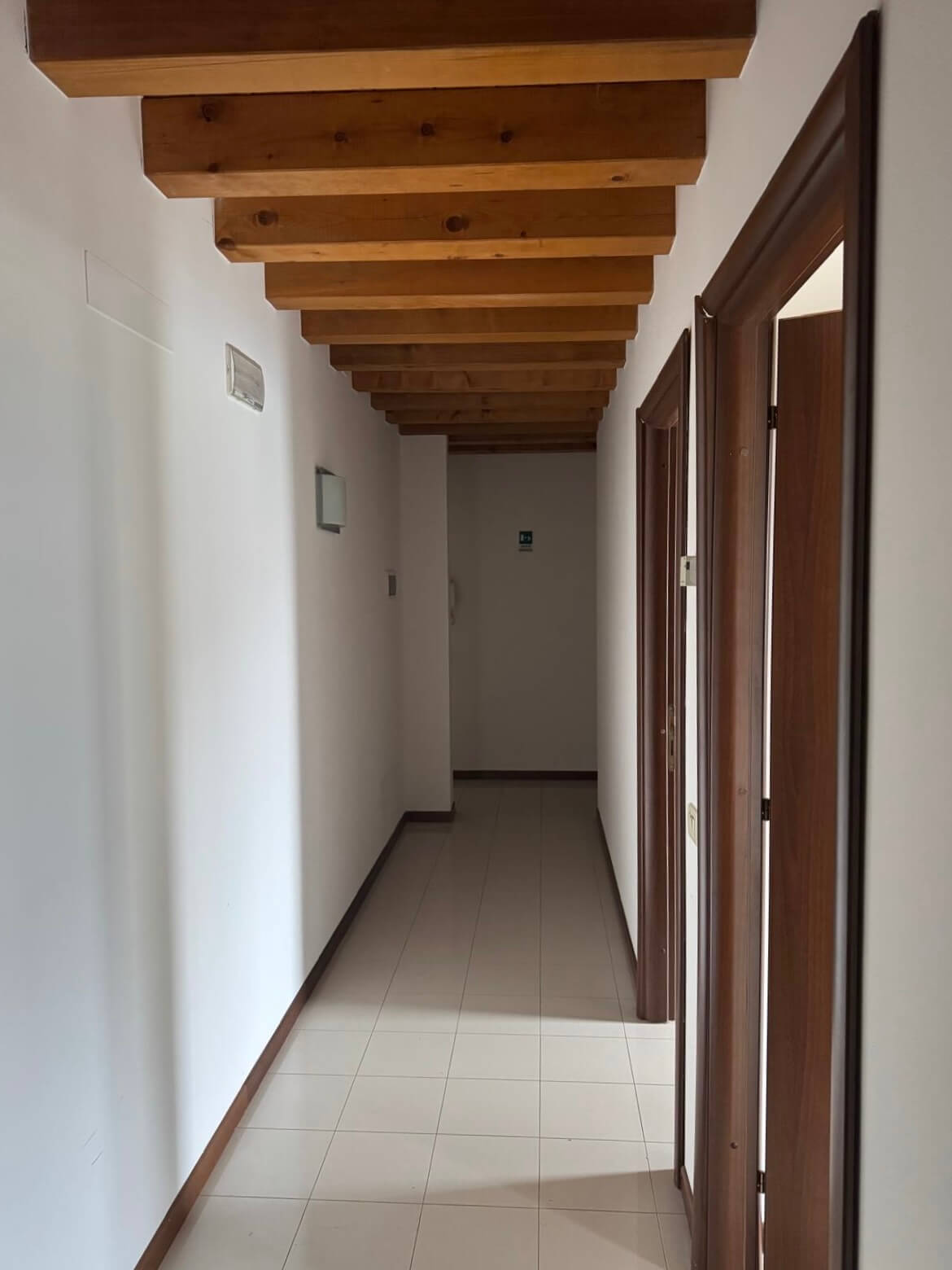 Pavimentazione in piastrelle, serramenti in legno con vetrocamera e scuri, soffitti travati a vista e portoncino di ingresso blindato.